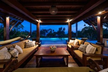 The traditional-style villa is located on a hillside overlooking the ocean, with a 16-metre-long pool, surrounded by tropical gardens. An ideal choice for families, couples and groups of friends looking for rest, relaxation, and a touch of adventure.