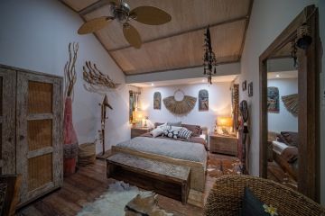 Villa Lontar is very modern and provides all the housing standards. The beautiful Balinese accessories will make you feel connected to Bali. There is a 14m swimming pool with seating, an outdoor shower and a view of the Indian Ocean, a tropical garden with ponds, a roof terrace with seating and an exercise area, a dining room, a relaxing covered terrace with a self-service fridge stocked up with beer and soft drinks. Wi-Fi available throughout the house goes without saying. Villa Lontar is located right on the beach, about 50 meters from the ocean, on a property with an area of 1,300 m2.
